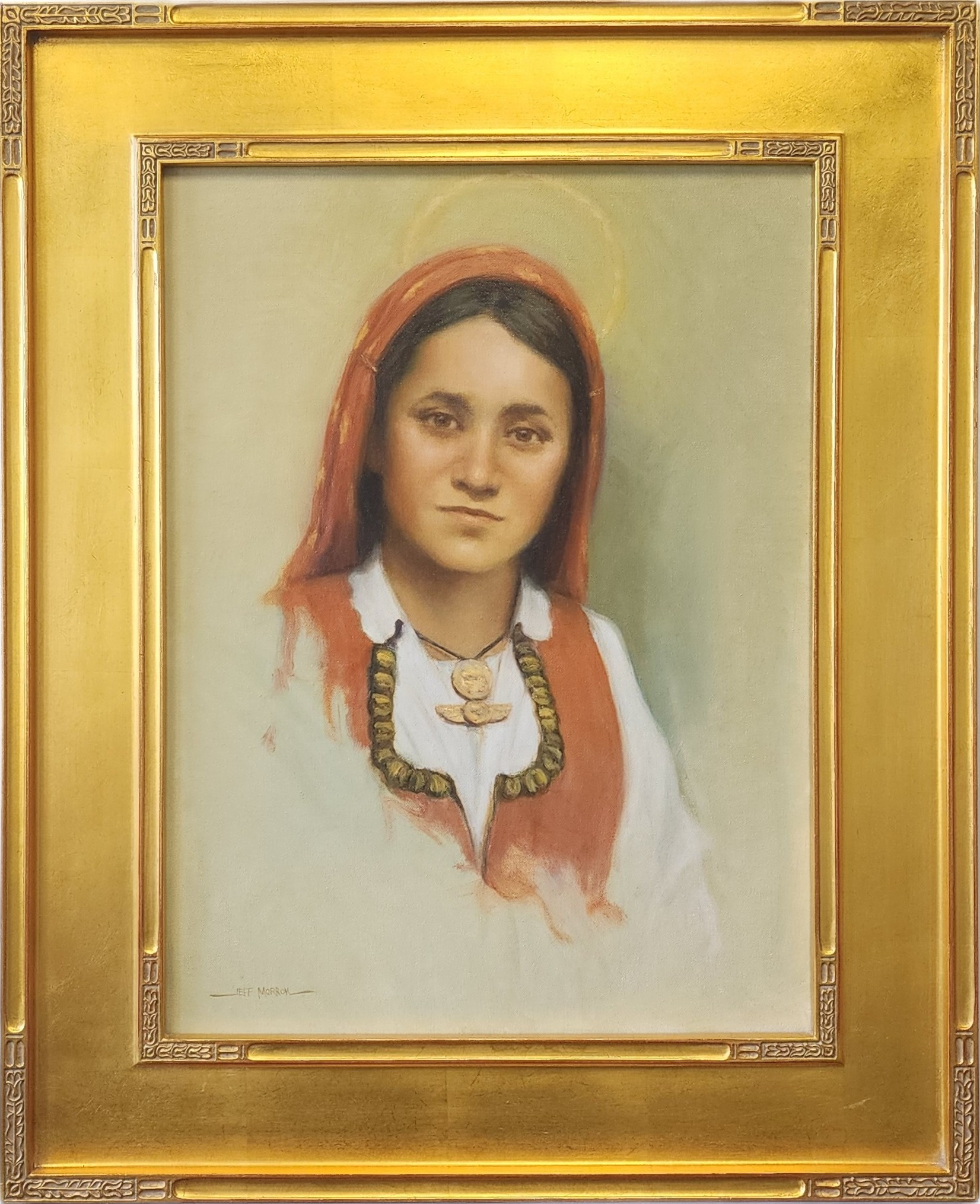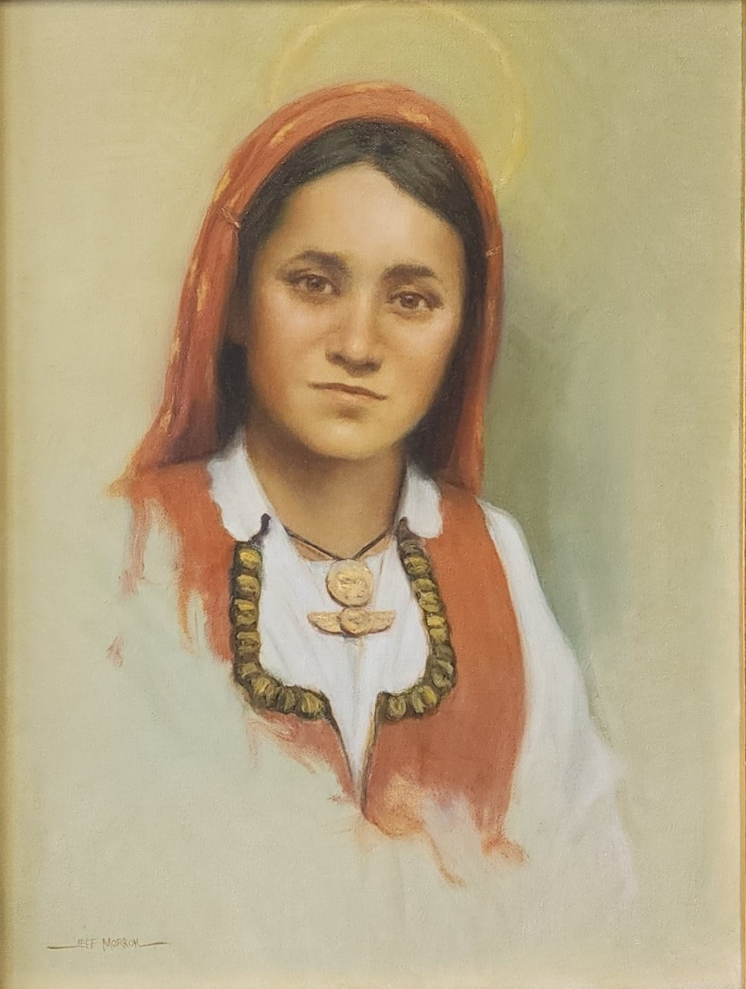 This evocative painting by Jeff Morrow, titled A Future of Service, portrays Mother Teresa in her native Albanian attire during her early years of devotion. Rendered with warmth and reverence, Morrow captures the compassion, humility, and spiritual strength that would later define one of the world’s most beloved humanitarians.