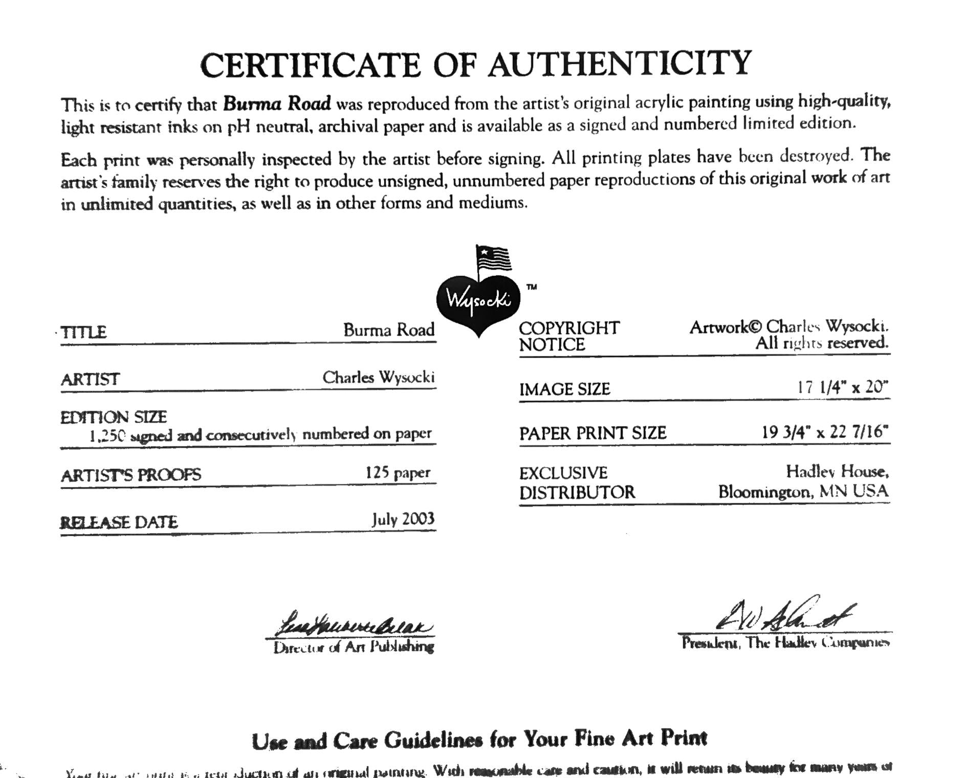 This print of Burma Road was reproduced from the artist's original acrylic painting using high-quality, light-resistant inks on ph neutral archival paper and is a signed and numbered limited edition.